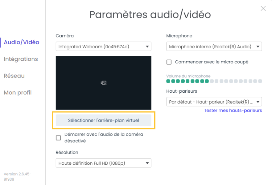 2. Cliquez sur Sélectionner l'arrière-plan virtuel.