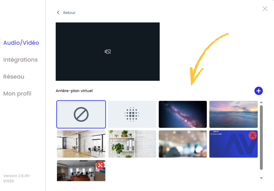 3. Choisissez un arrière plan virtuel prédéfini dans la liste, ou importez le votre en cliquant sur +.